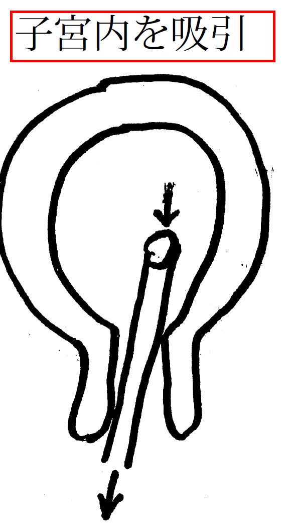 ①まず子宮口にラミナリア又はダイラパンを数本入れ子宮口を広げます。挿入されたラミナリアやダイラパンは周囲から水分を吸収して子宮口の中で膨張し半日くらいで子宮口が広がります。