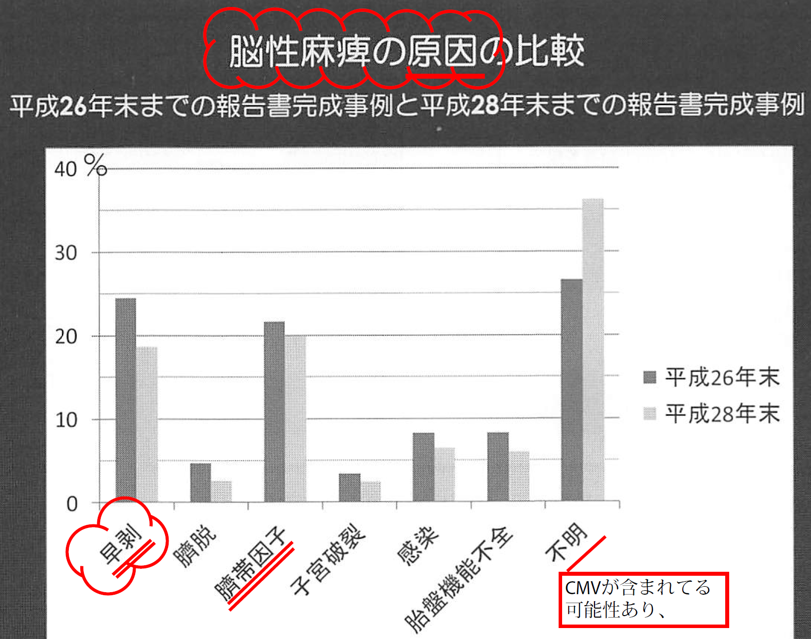 早剥は、児の脳性麻痺(脳障害、身体障害)の原因の第一位となっています。