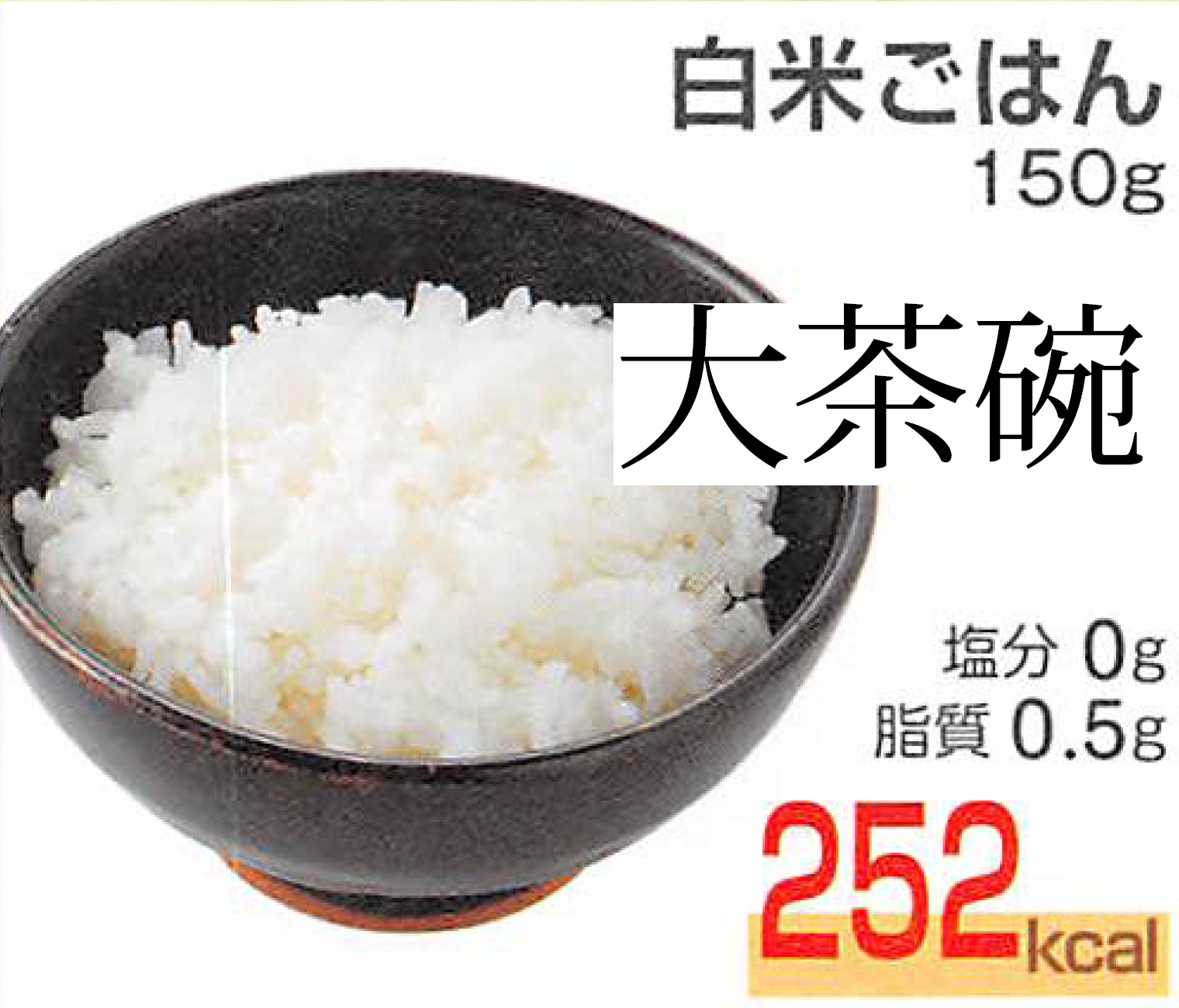 初心者の方はカップラーメン1杯のカロリーが350Kcal前後なのでそれを基準にして比較してみると見当が付きます。