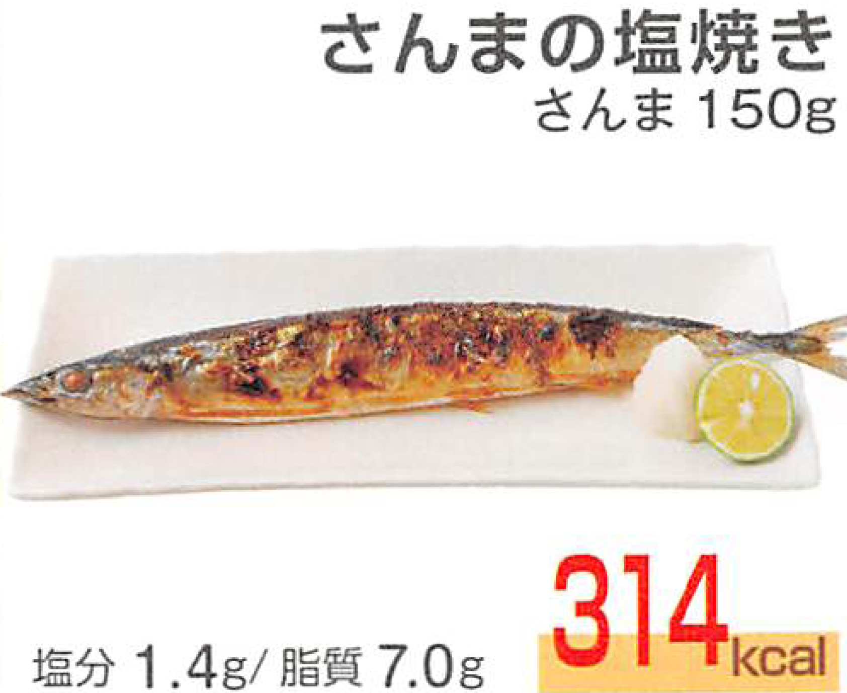 ✖調理パン又は菓子パン1個(300~350~450Kcal) = 納豆50gパック1個(100Kcal)+さんまの塩焼き(314Kcal)