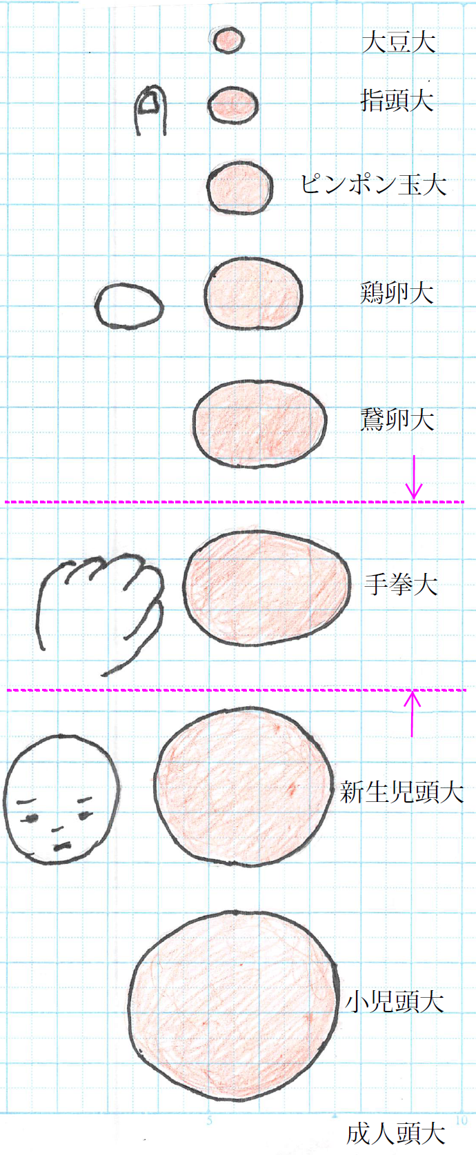 手拳大・・・子宮全体が手拳大以上では、手術を考えたり定期的経過観察もキッチリ行います。