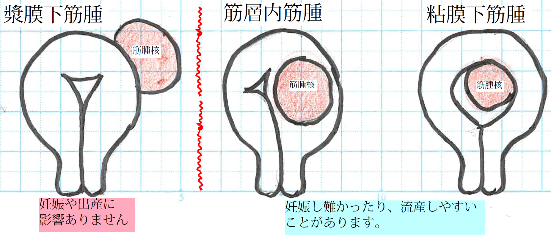 筋層内筋腫(筋腫核が子宮の筋層=壁内にあります)、