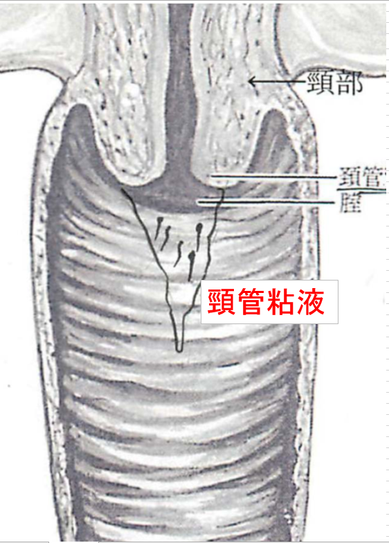 ★頸管粘液は子宮口から出て、つららの様に、鼻水の様に垂れ下がっています。