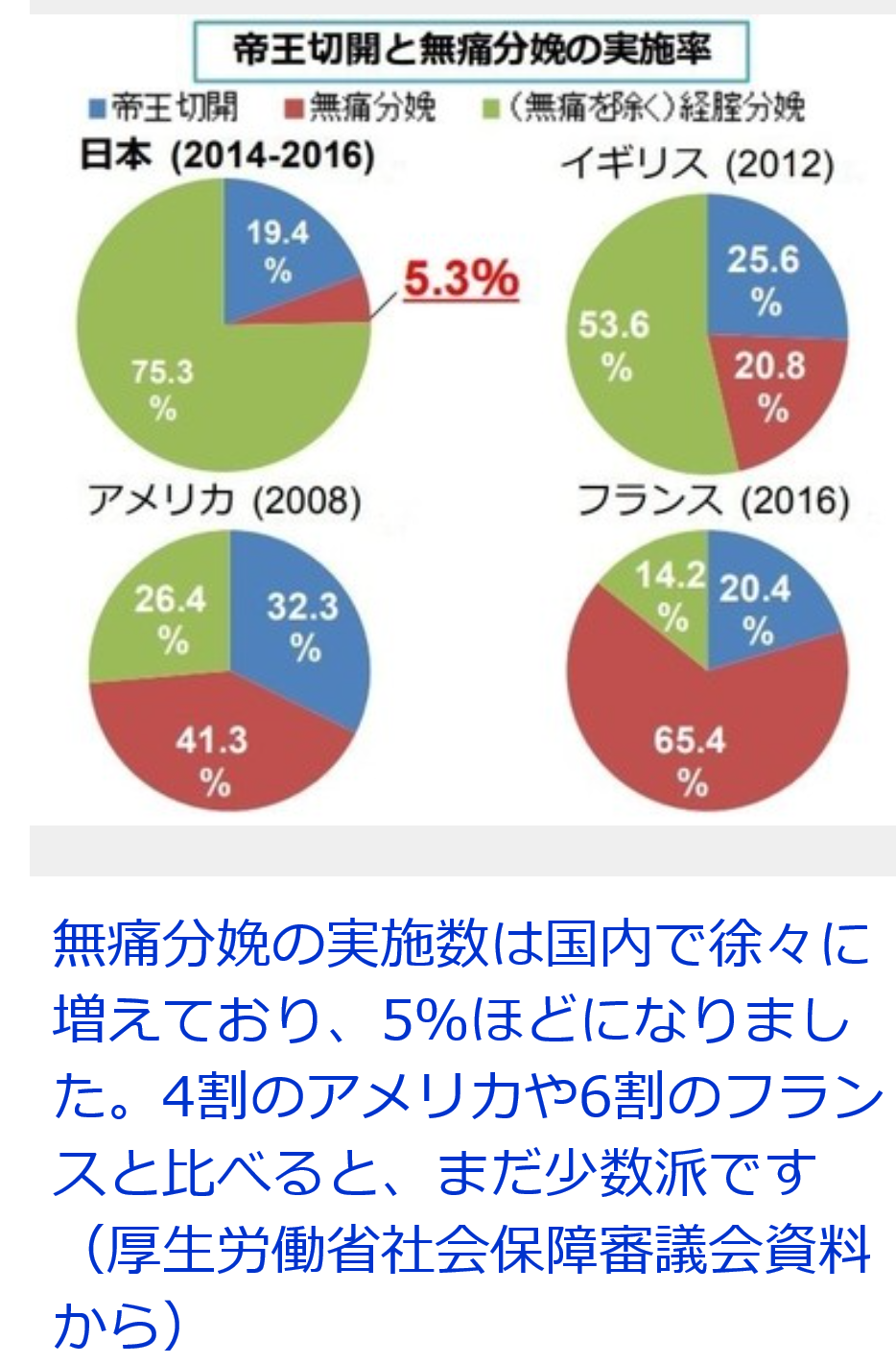 健康保険で無痛分娩ができる国もあります。日本では無痛分娩される方は3%→5%→6%(超最近では6%)に増加しています。