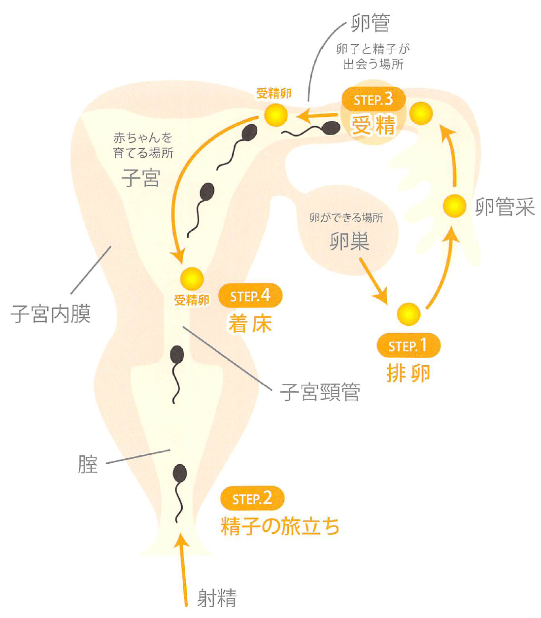 そこで、卵管に入ってきた卵と出会い受精します。