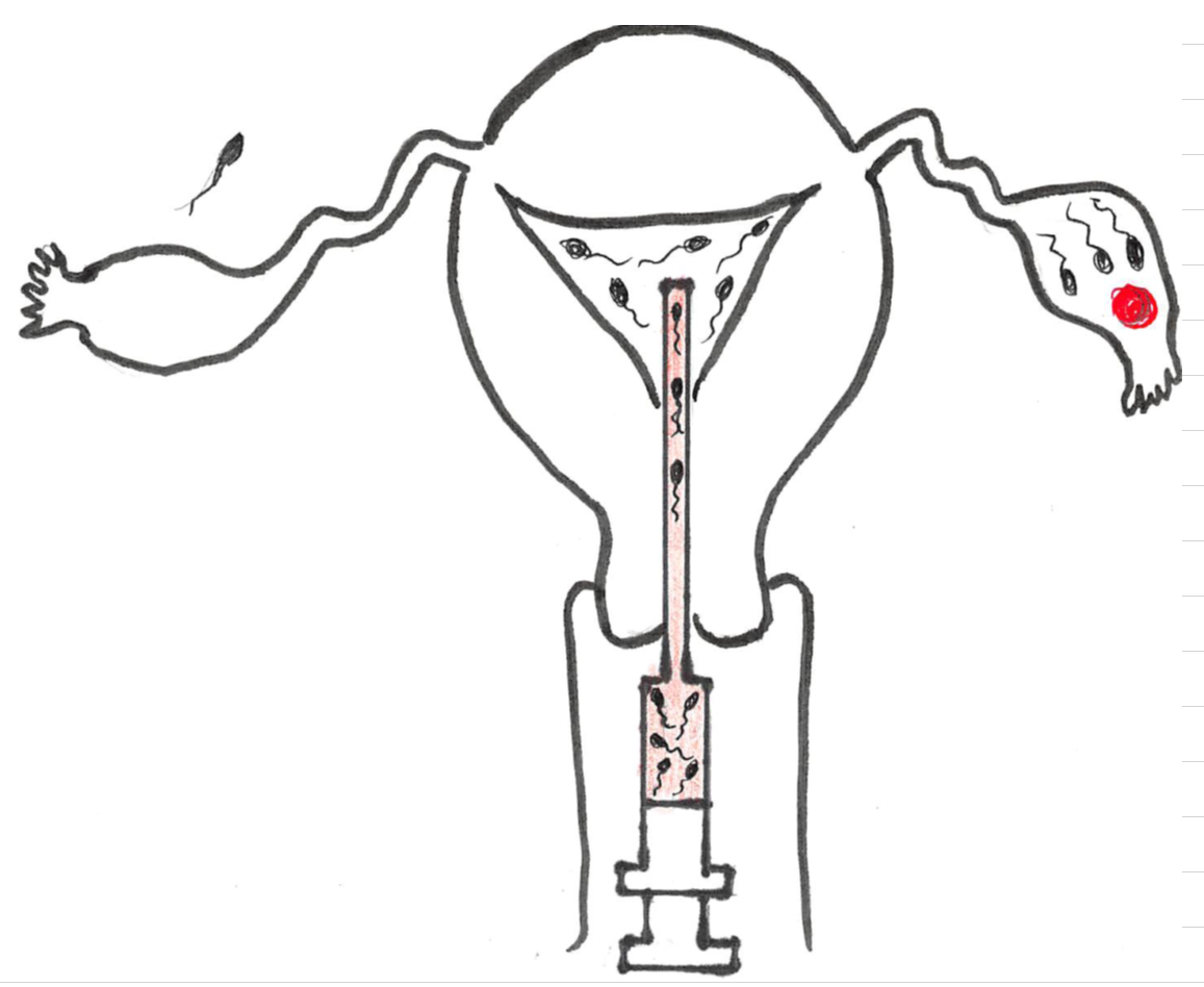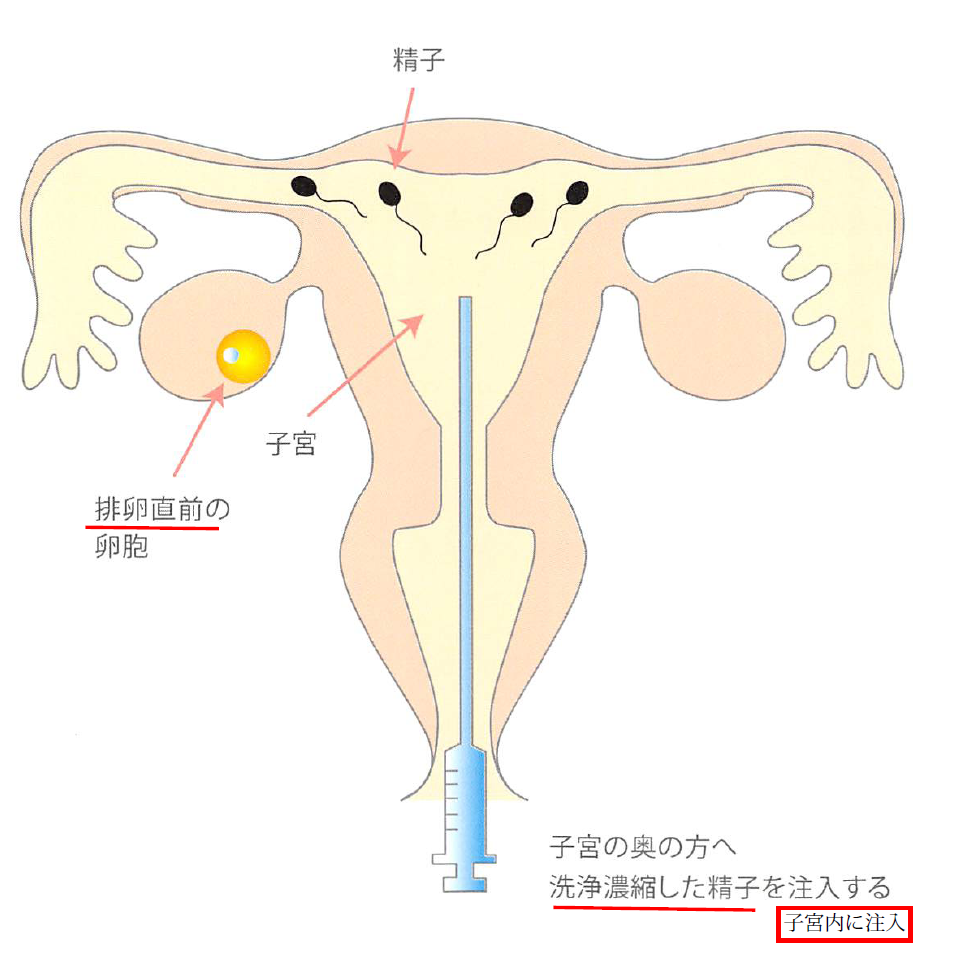 集めた精子を注射器に入れて、注射器の先に専用の細い軟らかいチューブを付け、子宮内に挿入し精子を注入します。