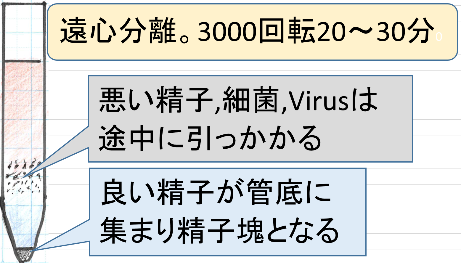 悪い精子や雑菌やウィルスは試験管途中に引っかかって試験管の底までは降りてきません。