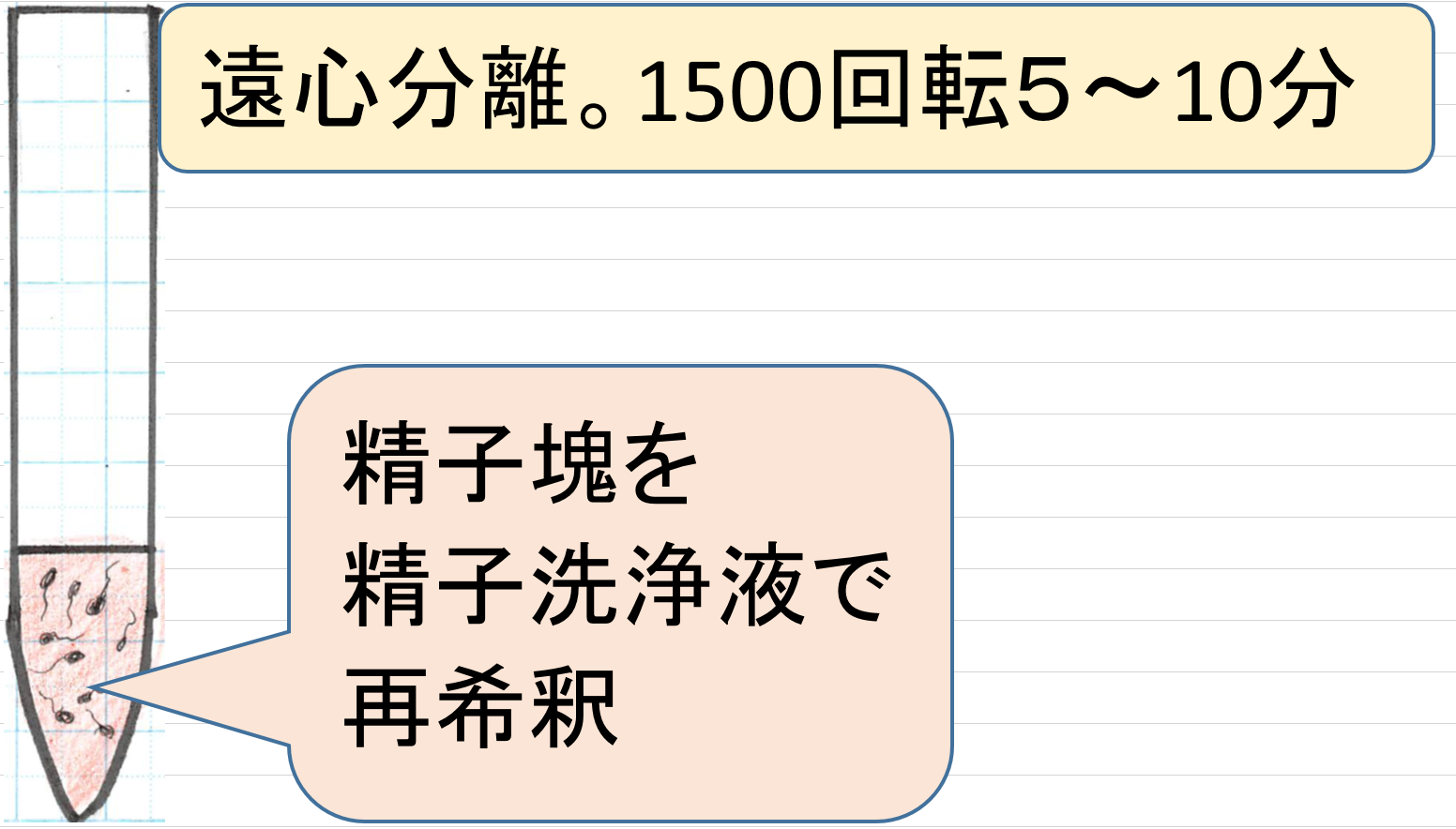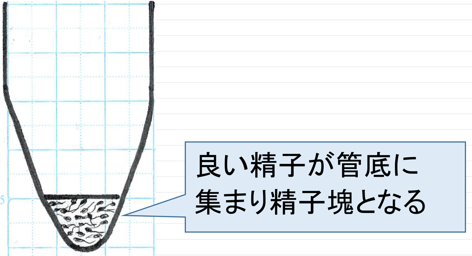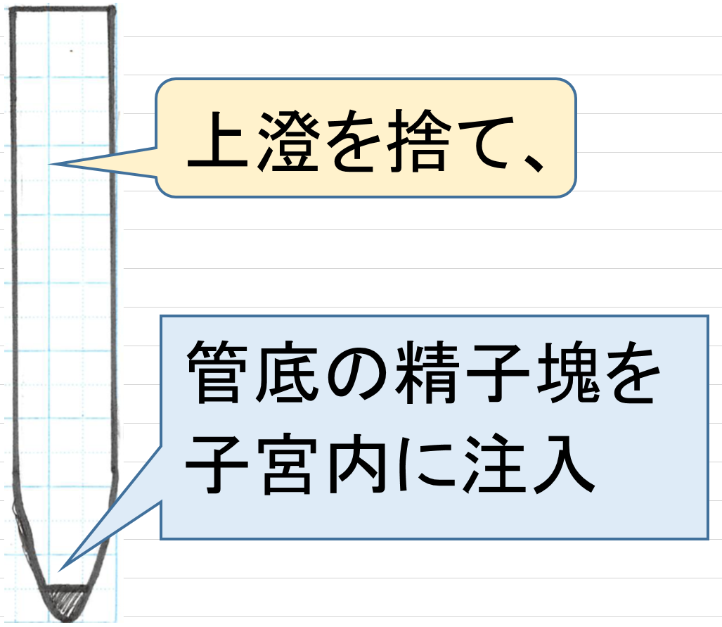 良い精子が試験管の底に集まり、精子の塊になります。