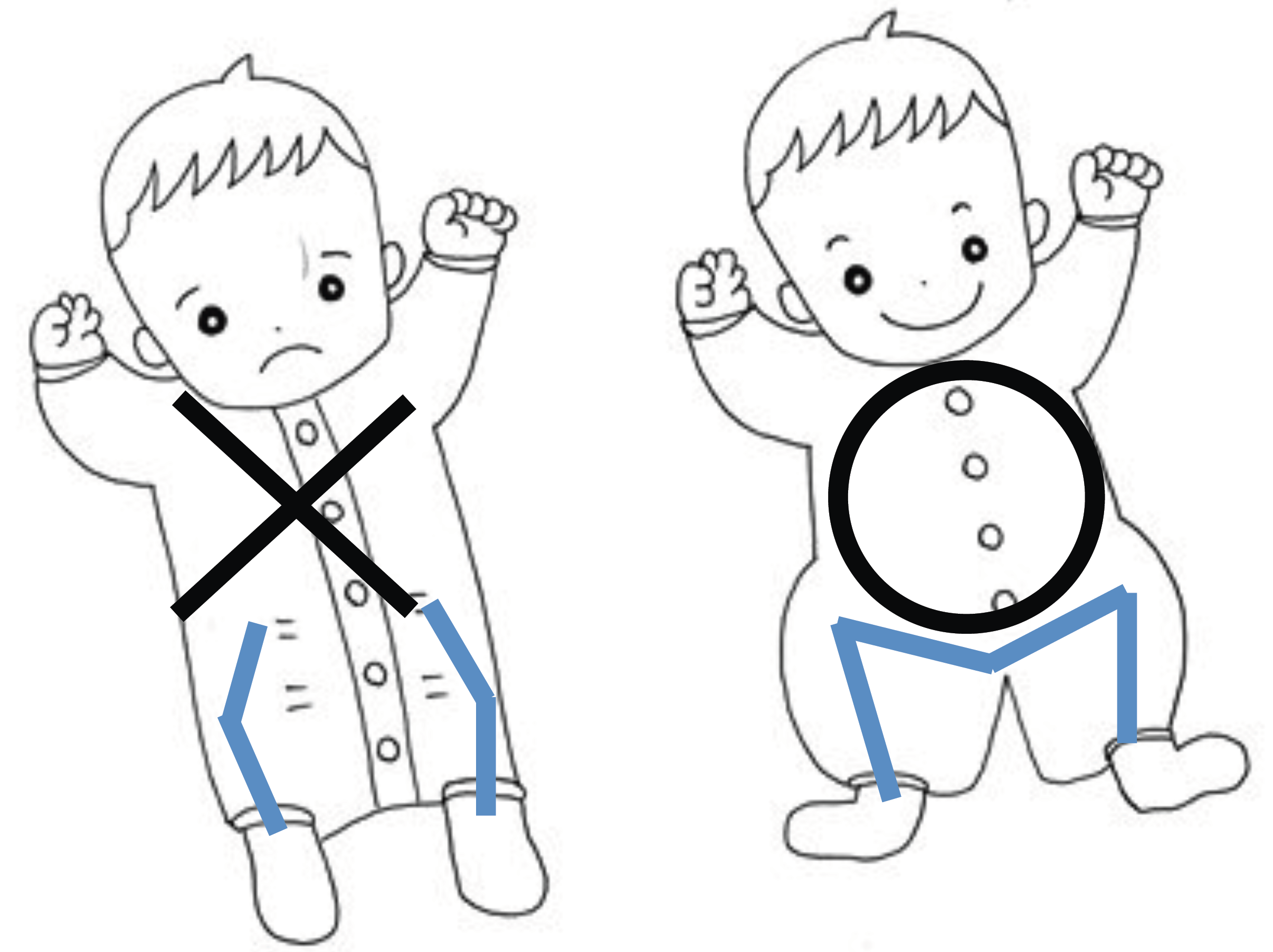 ★厚着をして、足を延ばした状態で包まれ固定されていると、股関節脱臼しやすくなります。