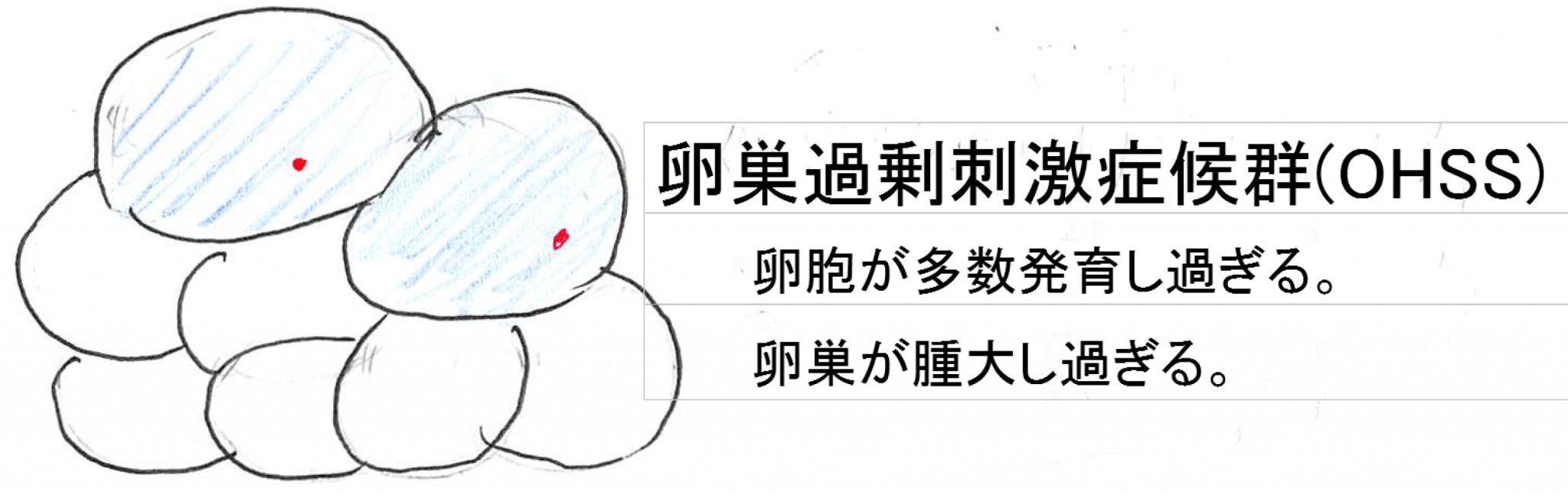 排卵誘発剤の注射(HMG、pureFSH)の連日注射で、稀に排卵数日後から卵巣過剰刺激症候群(OHSS)(卵巣が腫れすぎる)が起こることがあります。