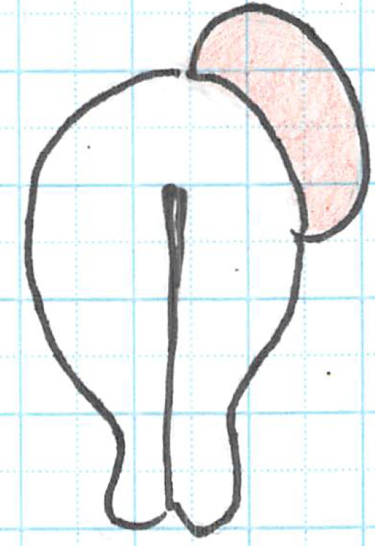 ・下図の様に、筋腫核の上に胎盤が付着していると、妊娠中に胎盤早期剥離が起こる事があります。