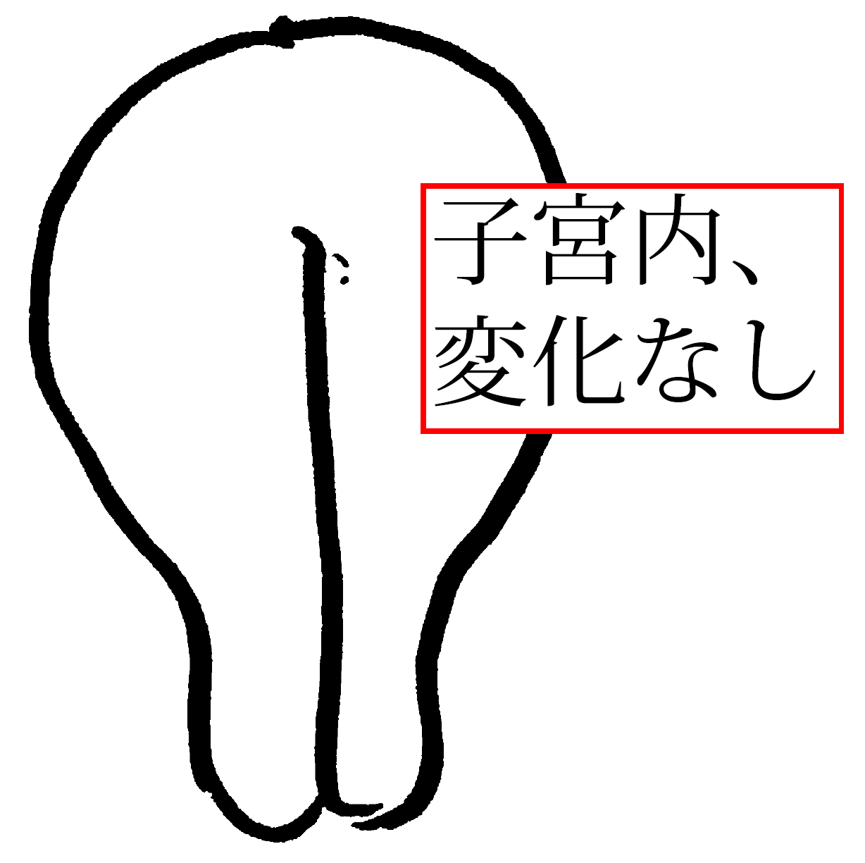 (1)生理が数日遅れという超初期の場合は、尿妊娠反応は出ますが、子宮の中には変化が見られません。