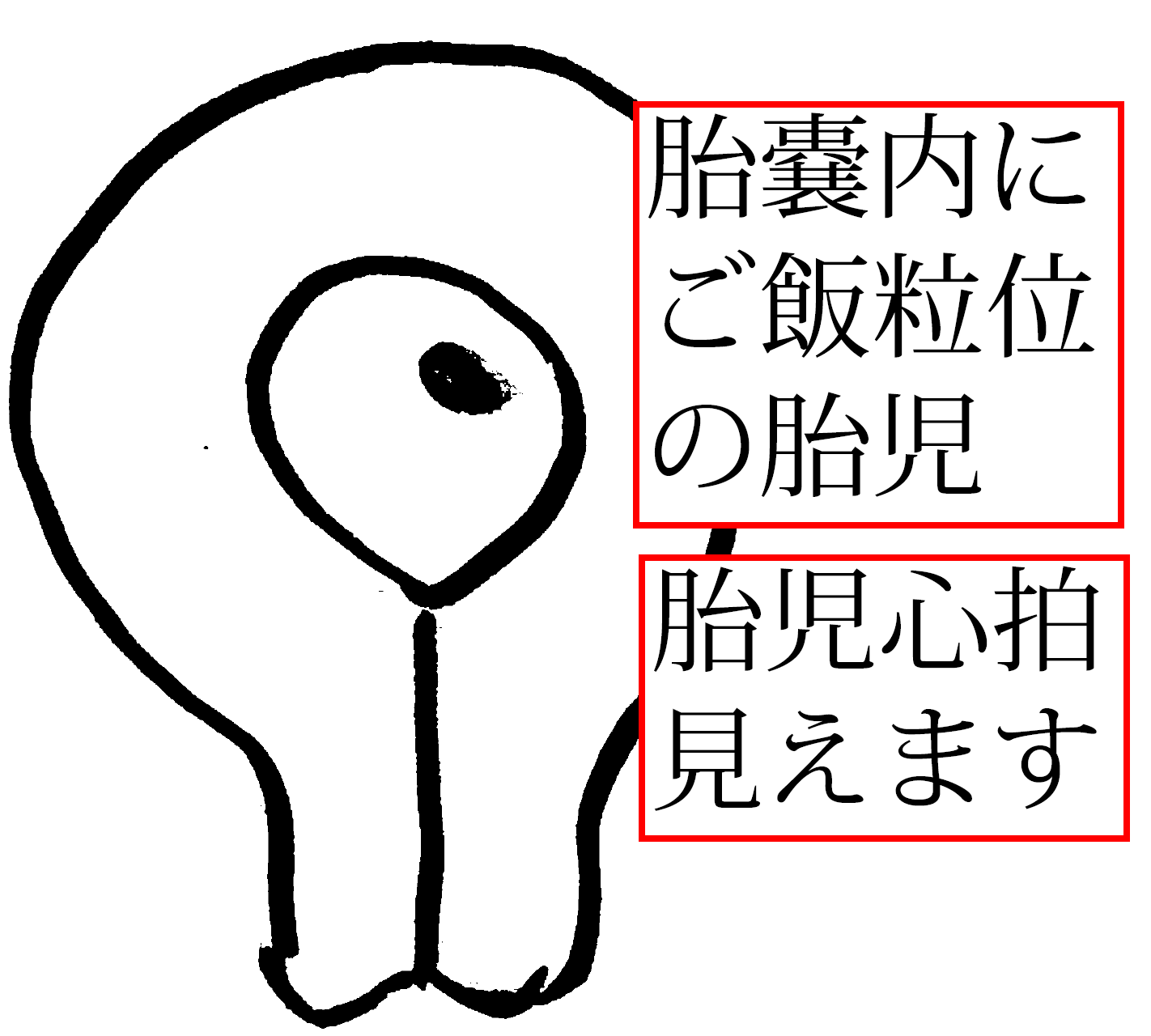 胎児が2~3~4mm(米粒~ご飯粒)の大きさになり、胎児心拍動も見えます。